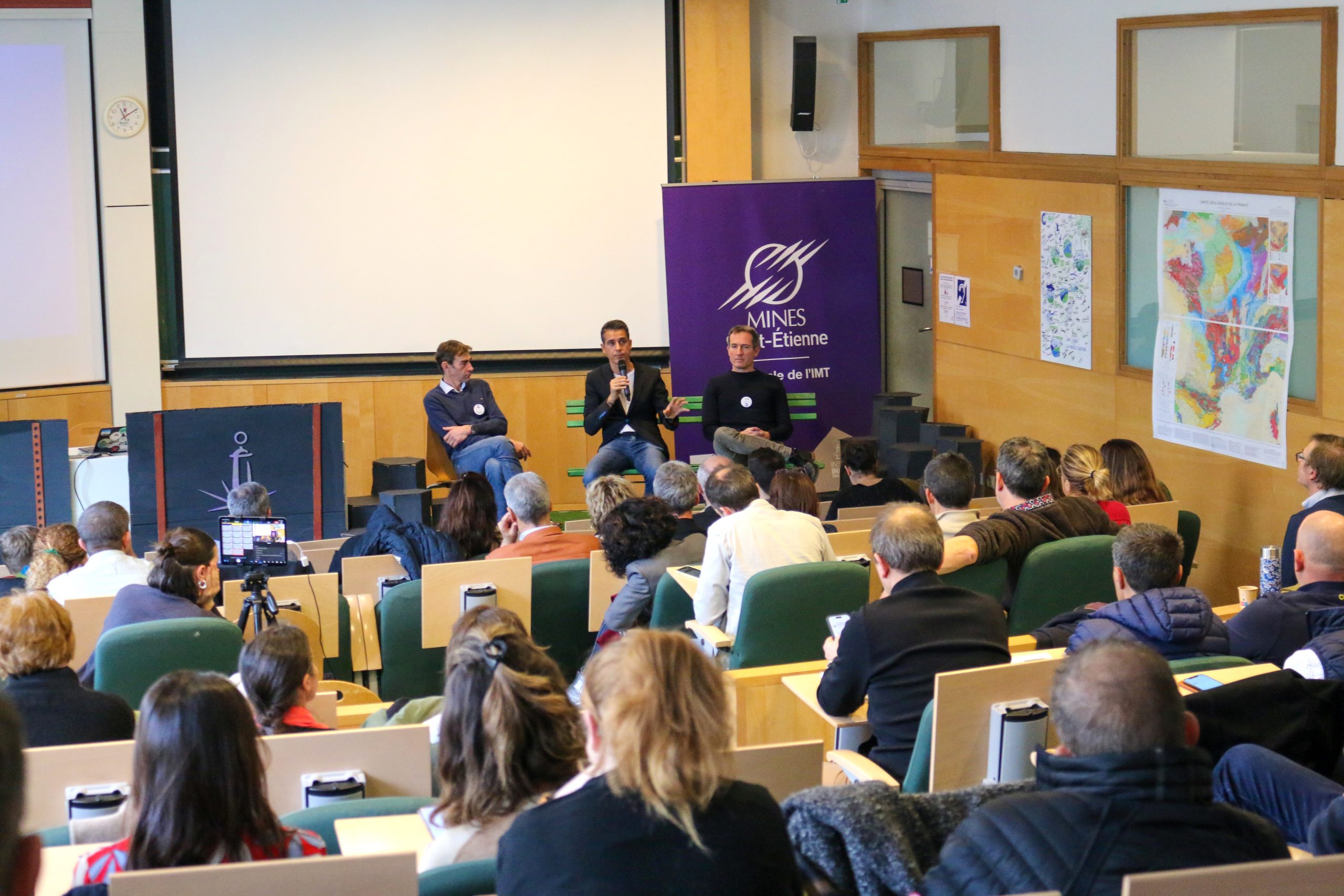 Pendant deux jours, des entrepreneurs, des élus et des membres du personnel ont bénéficié des infrastructures de Mines Saint-Étienne pour assister à des conférences, découvrir les collections de géologie et participer à des tables rondes sur le thème de la redirection écologique et des nouveaux modèles d’affaires à imaginer au regard des limites planétaires.
