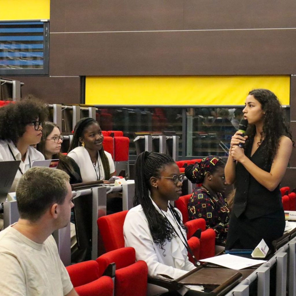 C’est Soulaf Allali, étudiante ISMIN, qui a soumis l’idée d’organiser ces débats. Inspirés par de réels échanges diplomatiques, les étudiants et étudiantes discutent et défendent les intérêts du pays ou de la délégation qu’ils représentent. Nous avons posé des questions à Soulaf pour mieux comprendre son initiative et le déroulé des échanges.